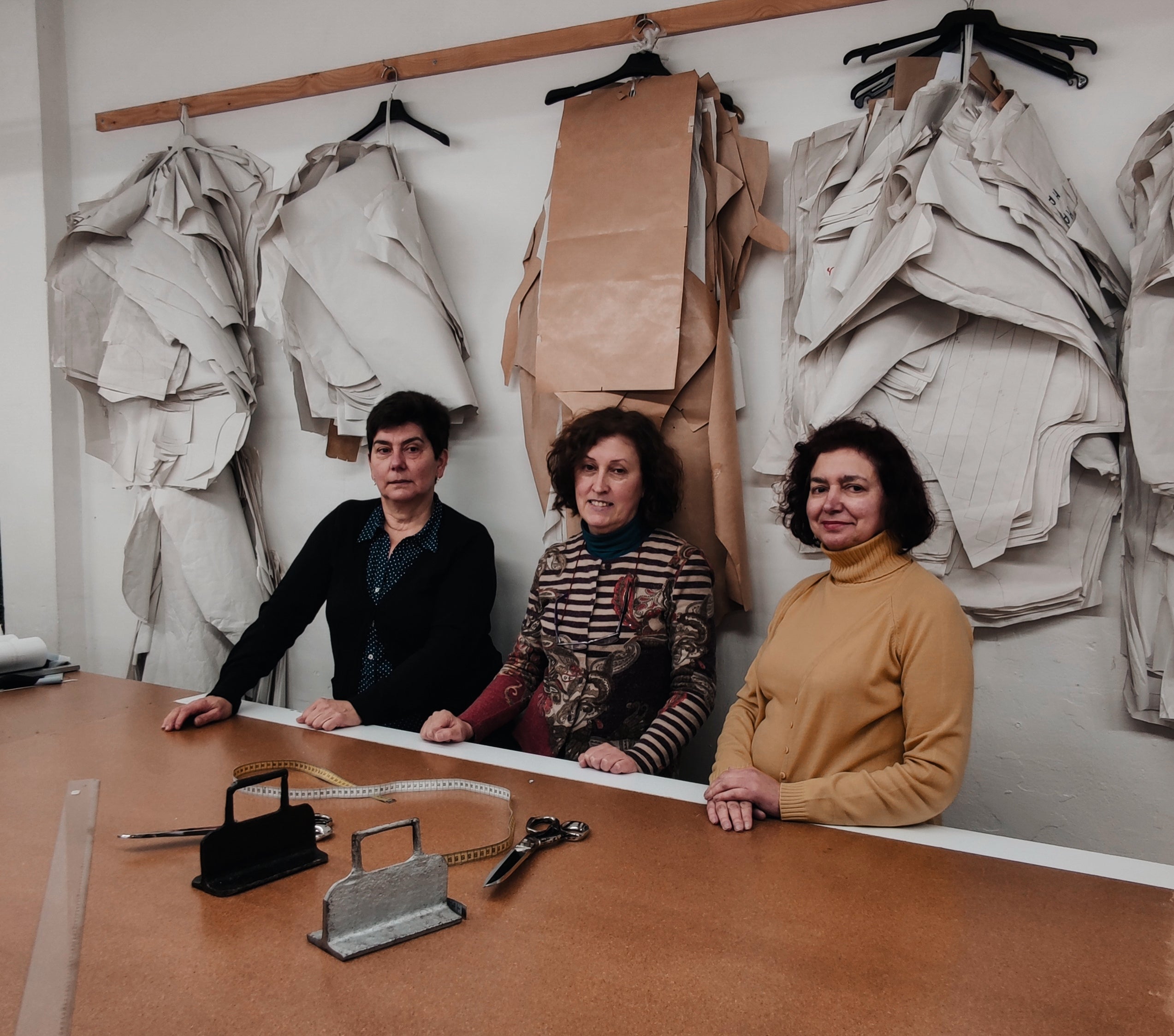 These three ladies that appear in the photo are responsible of all the shirts, jackets, trousers and pieces of The Laboratory line. They have been sewing for more than 3 decades being specialized in menswear shirting. Almost all the knowledge we have we owe to them. They are in charge of the process of cutting and sewing the garments to deliver a finished product. They have reliable workshops to scale sizes and make adjustments.