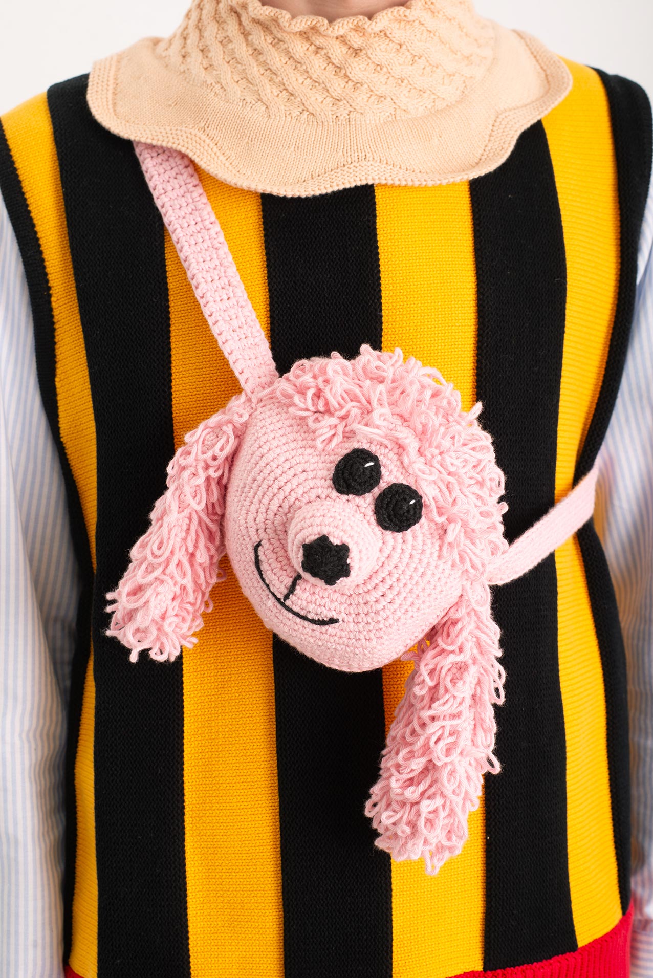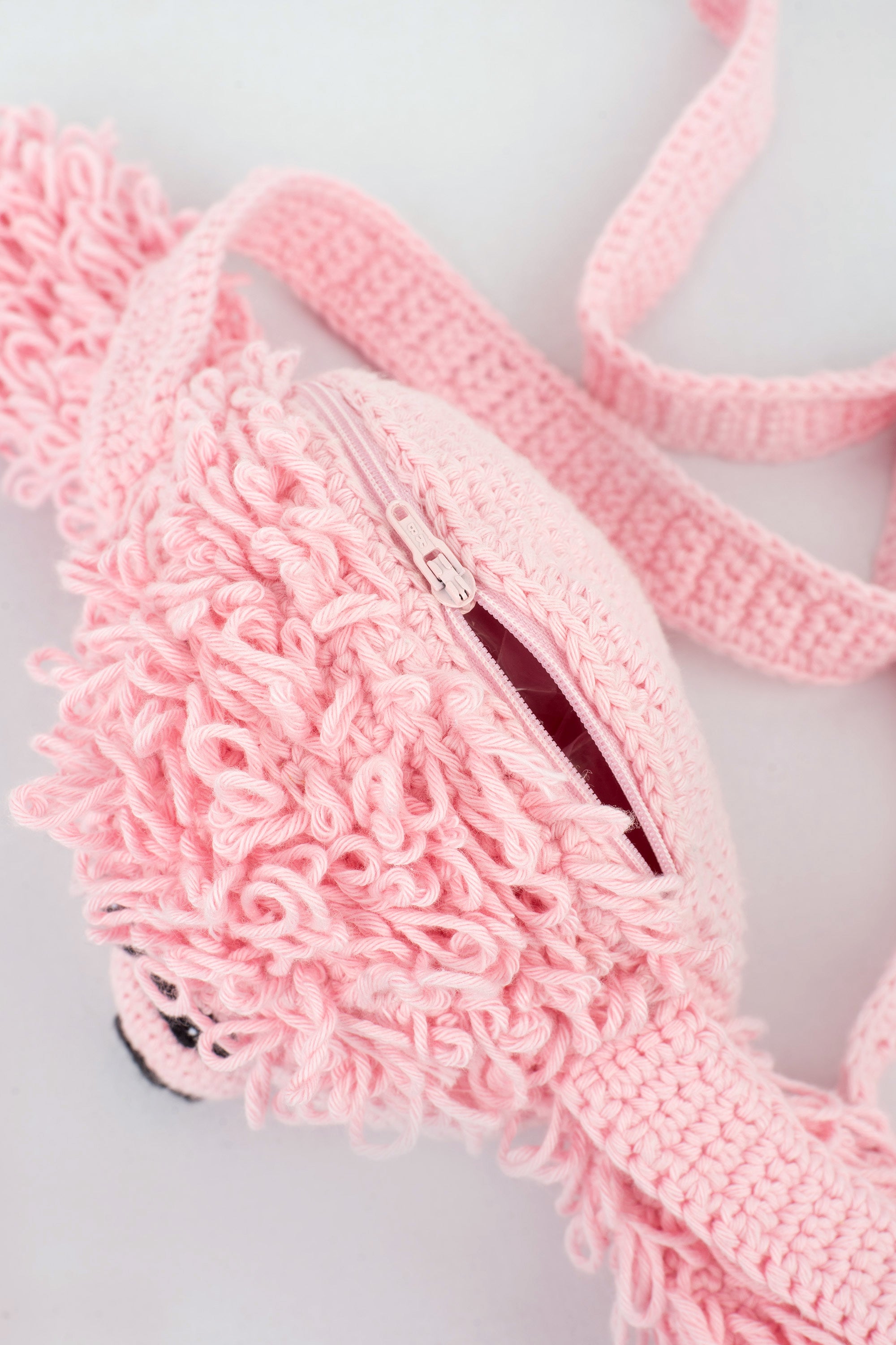 This bag was born from a dream where puppies ruled the world and everyone carried their snacks in style. Hand-crocheted and impossibly pink, it doesn’t just hold your stuff—it holds tiny conspiracies, secret dance moves, and a questionable obsession with biscuits.