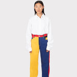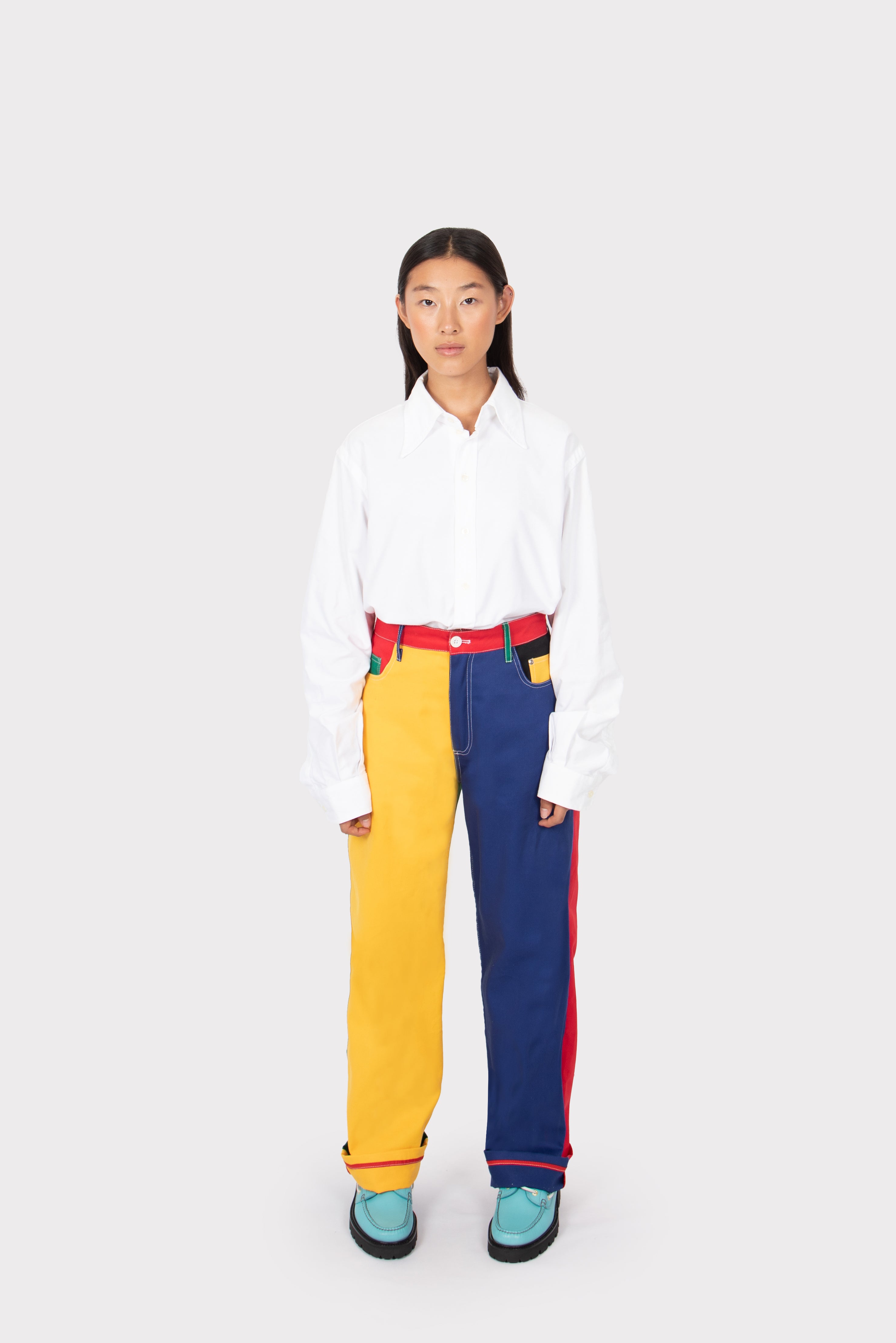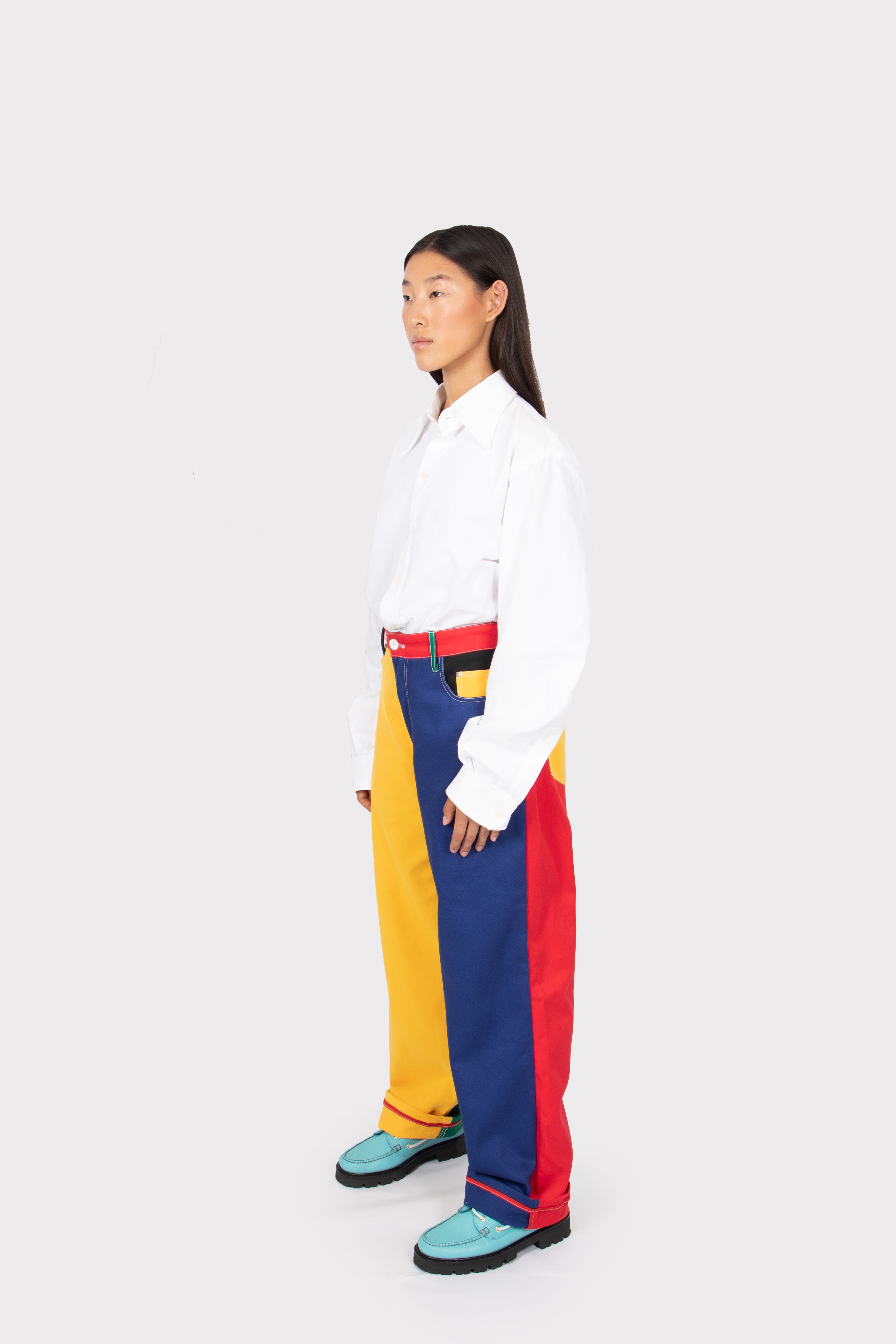 Some of the best things in life have primary colours: the sun, the sea... And they match everything, just like these trousers. Create statement looks with them, and play with your clothes. Add layers and textures to these trousers that will help you stand out. Combine them with a hoodie if you want something casual, or add a classic white shirt for a more formal look. Do it the same way you mingled red, yellow and blue to create new colours at school. Outsiders Division spirit materialised in a one-of-a-kind piece.