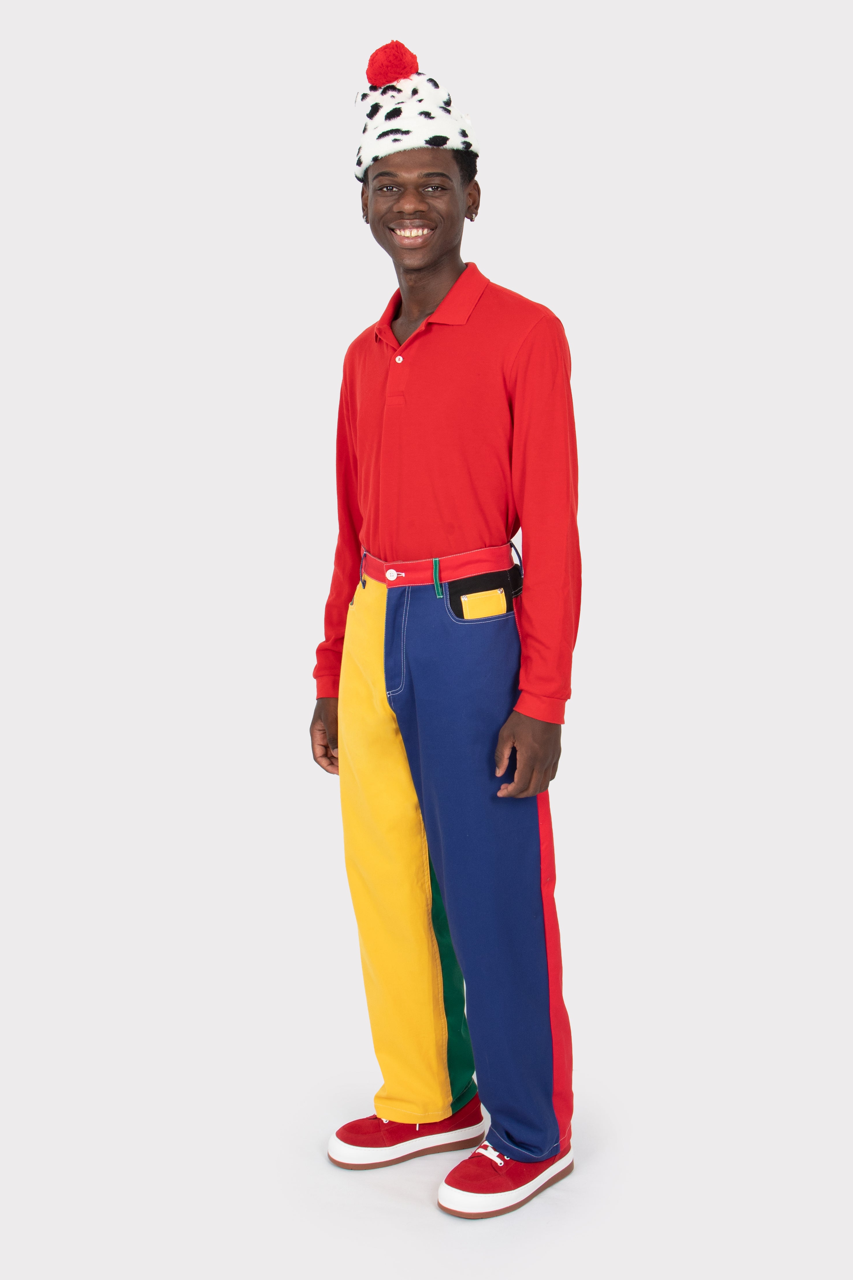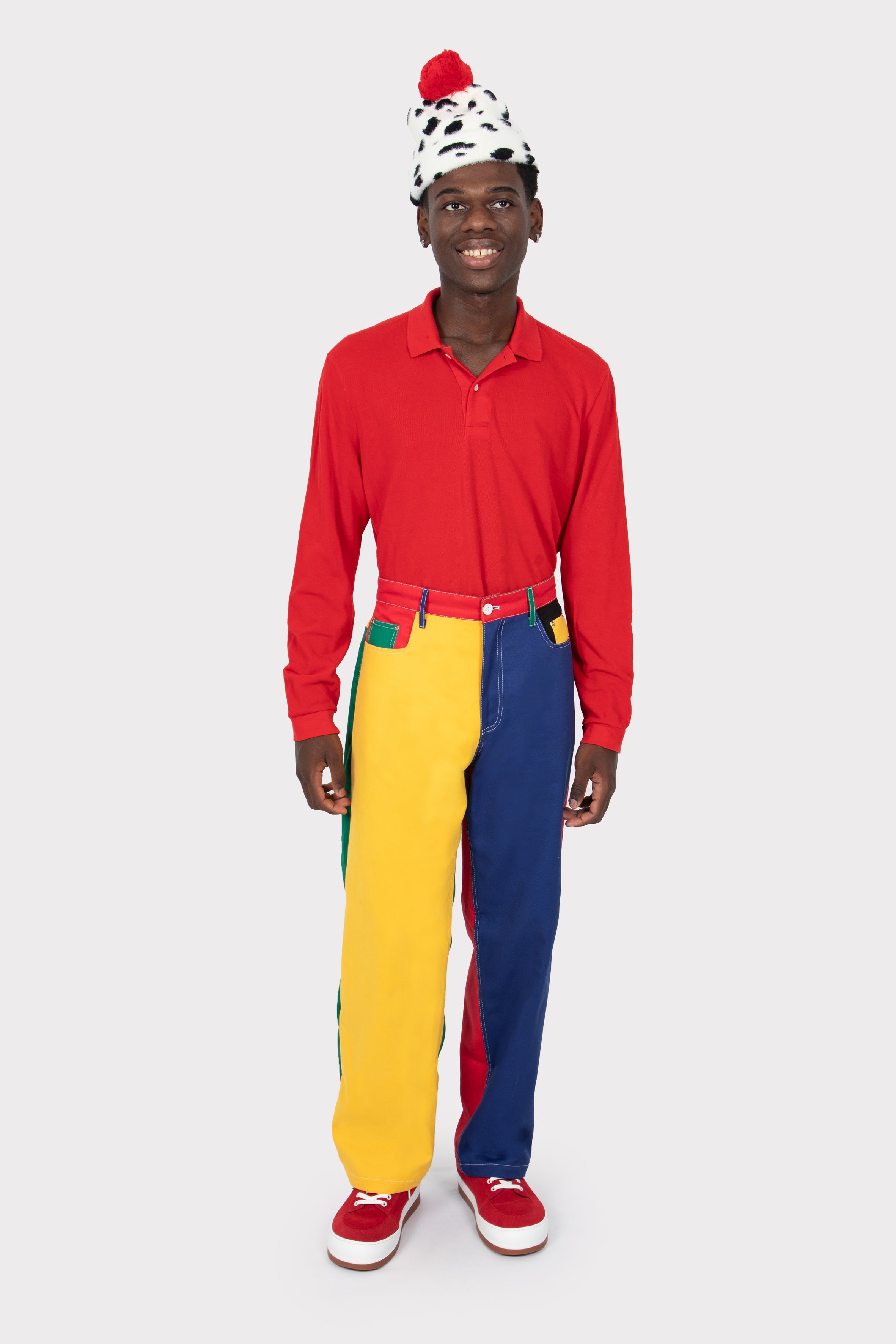 • Multicoloured trousers.