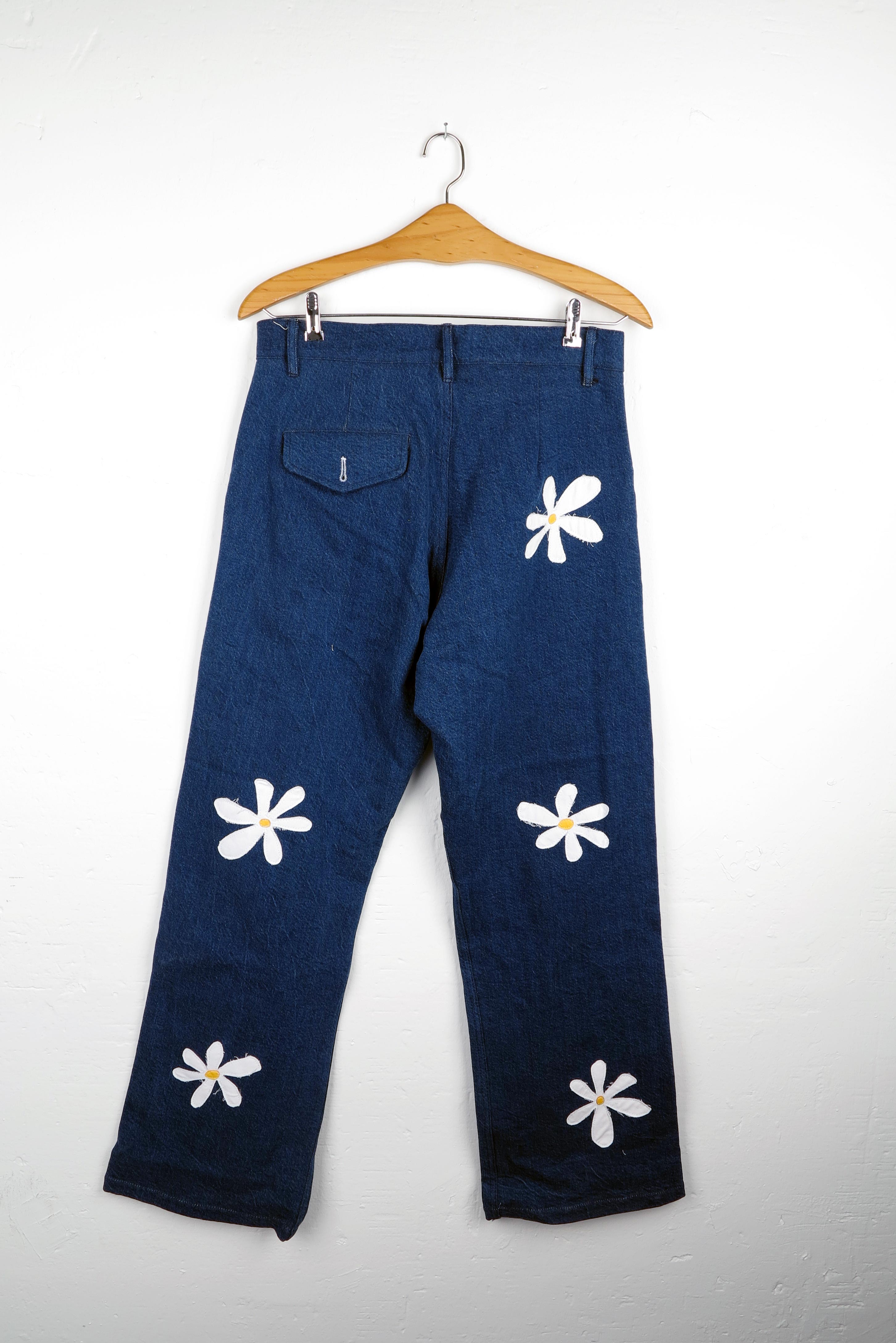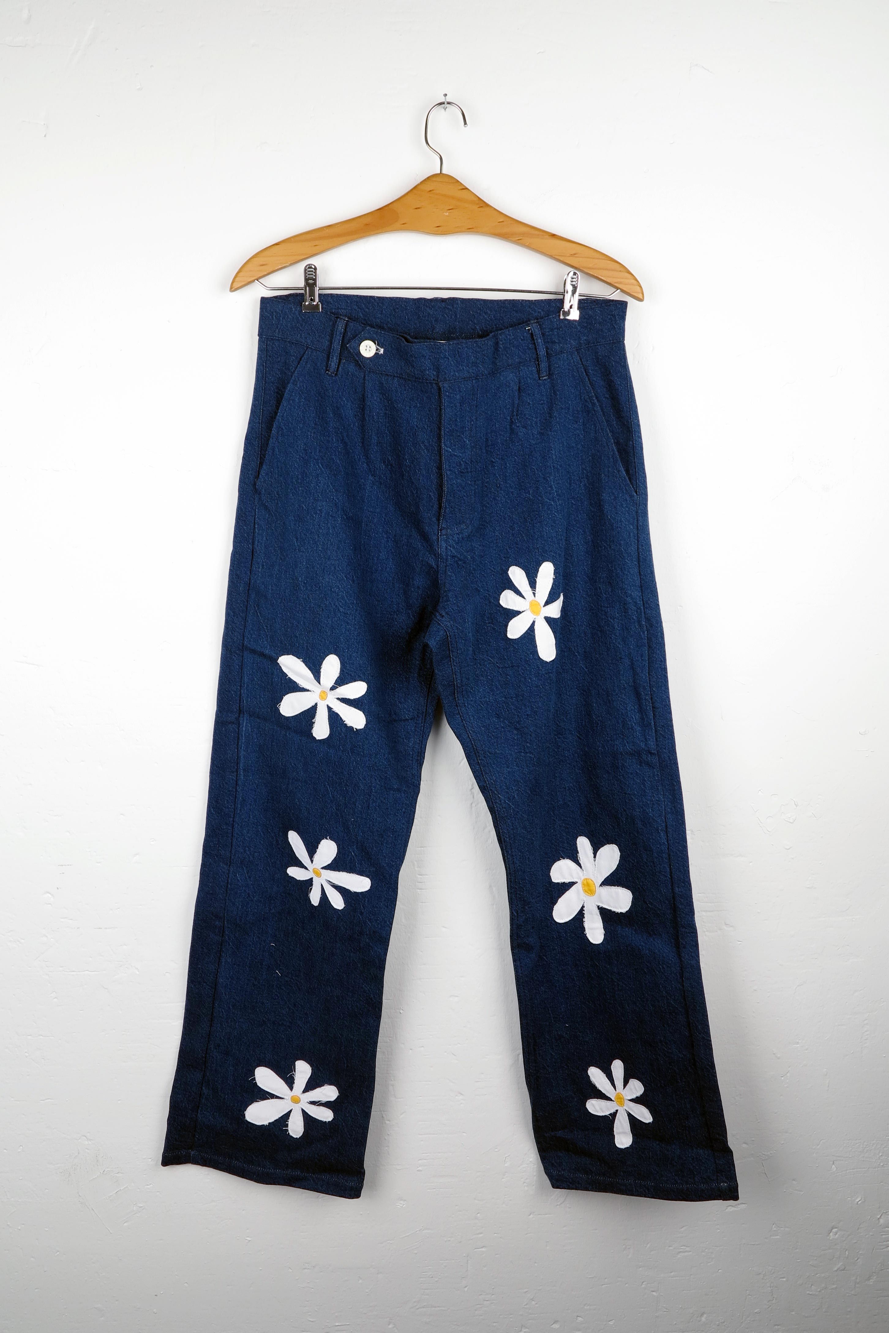 Flowers apliqués denim trousers. 100% Cotton