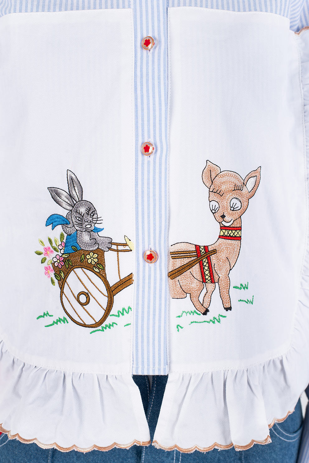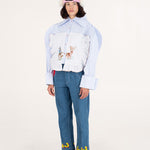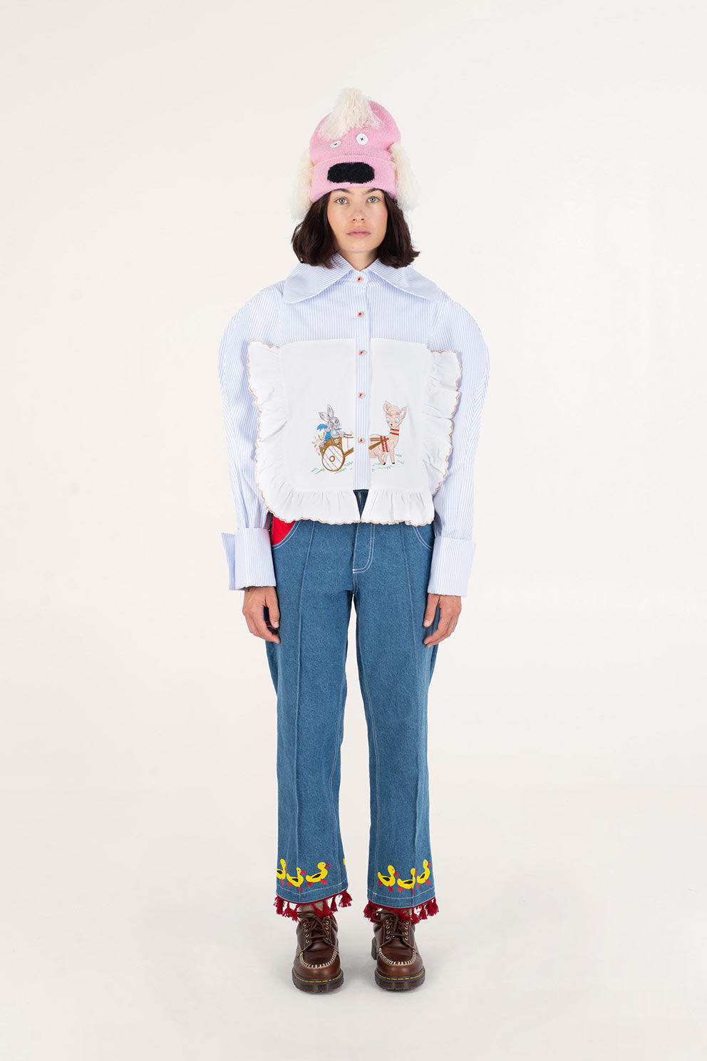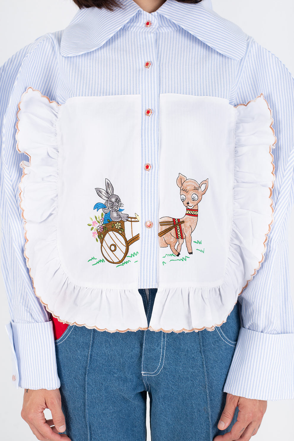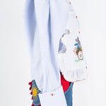 Imagine a shirt that hosts a carnival on your chest.  Wearing this shirt means you might suddenly be elected president of the meadow, or have a polite argument with a hedgehog about the meaning of stripes. Warning: it may cause applause from hedgehogs, envy from ducks, and spontaneous giggling in all humans.