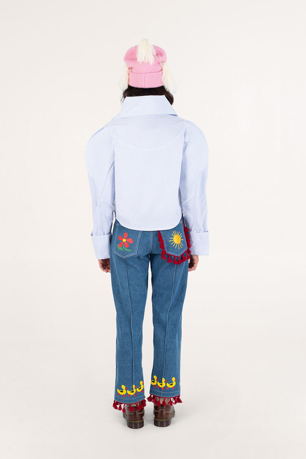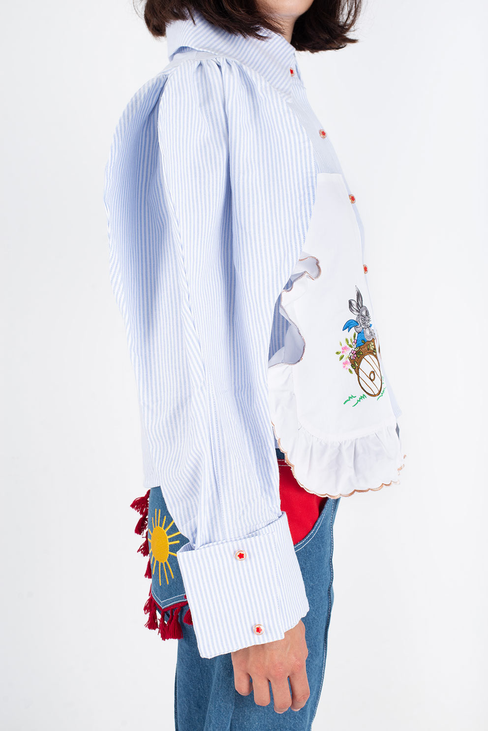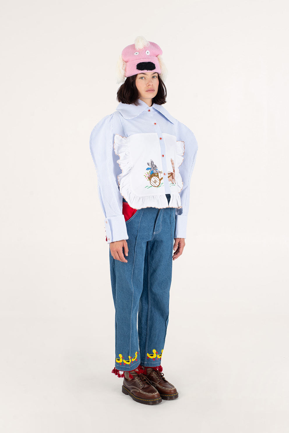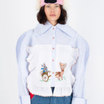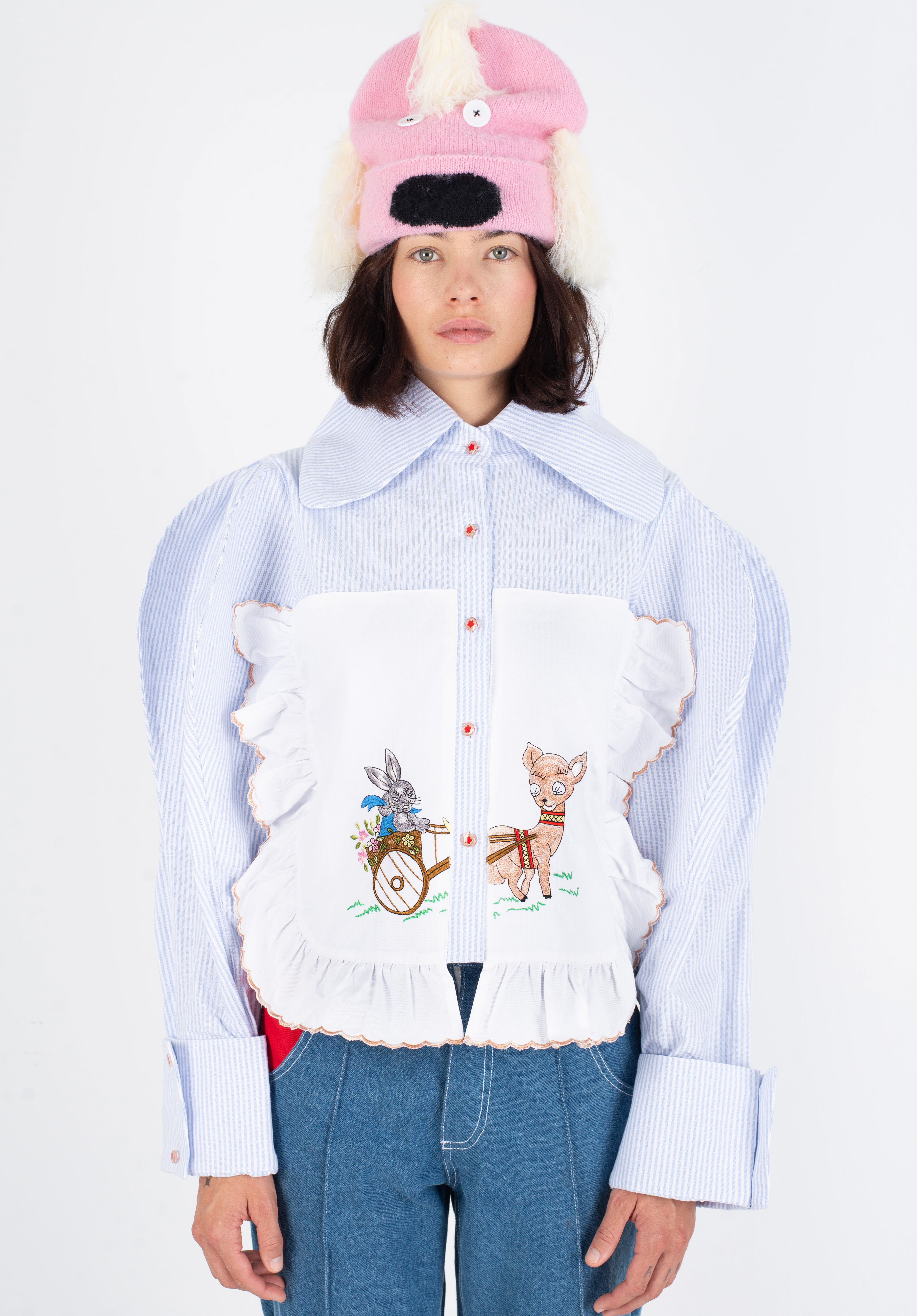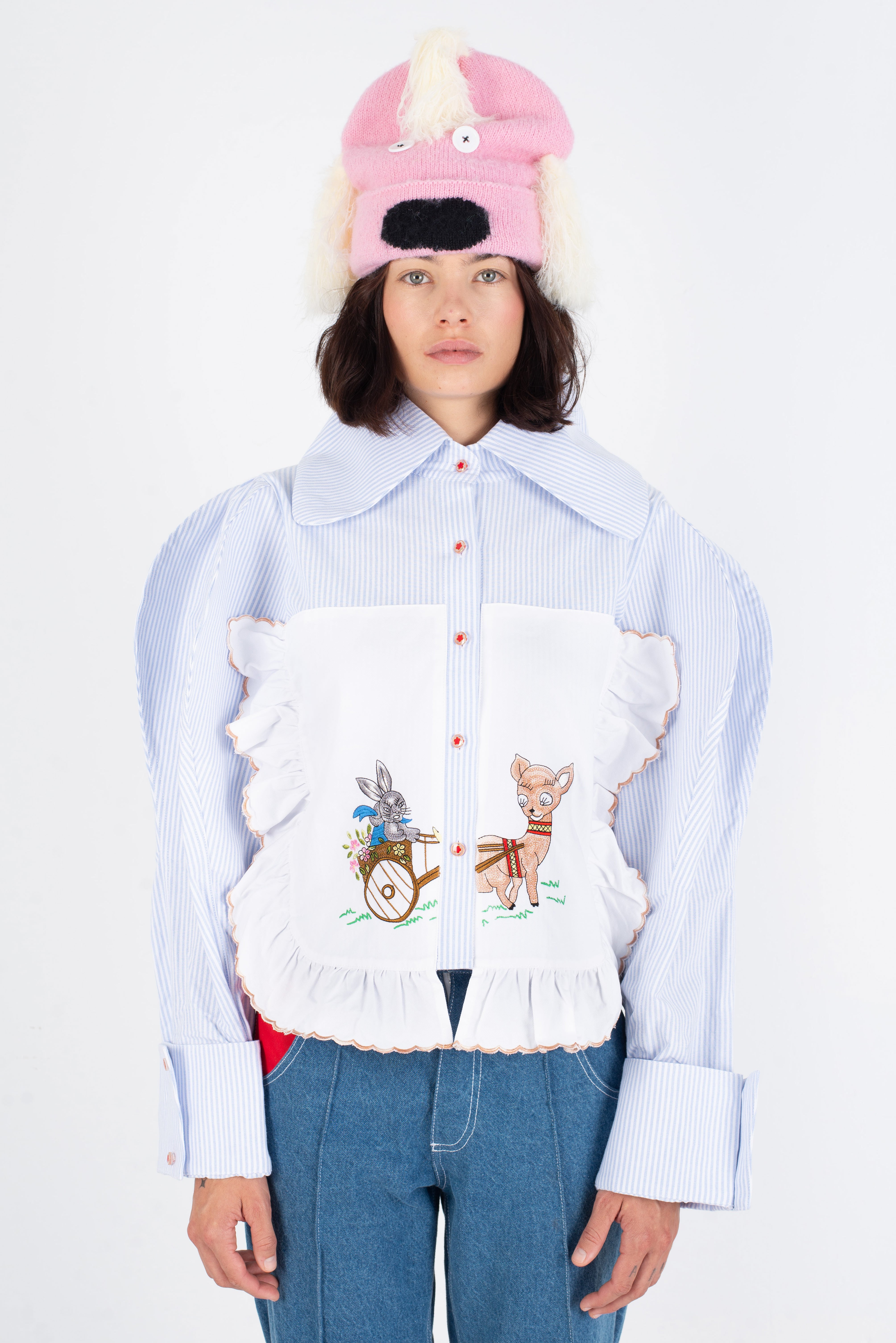 Imagine a shirt that hosts a carnival on your chest.  Wearing this shirt means you might suddenly be elected president of the meadow, or have a polite argument with a hedgehog about the meaning of stripes. Warning: it may cause applause from hedgehogs, envy from ducks, and spontaneous giggling in all humans.