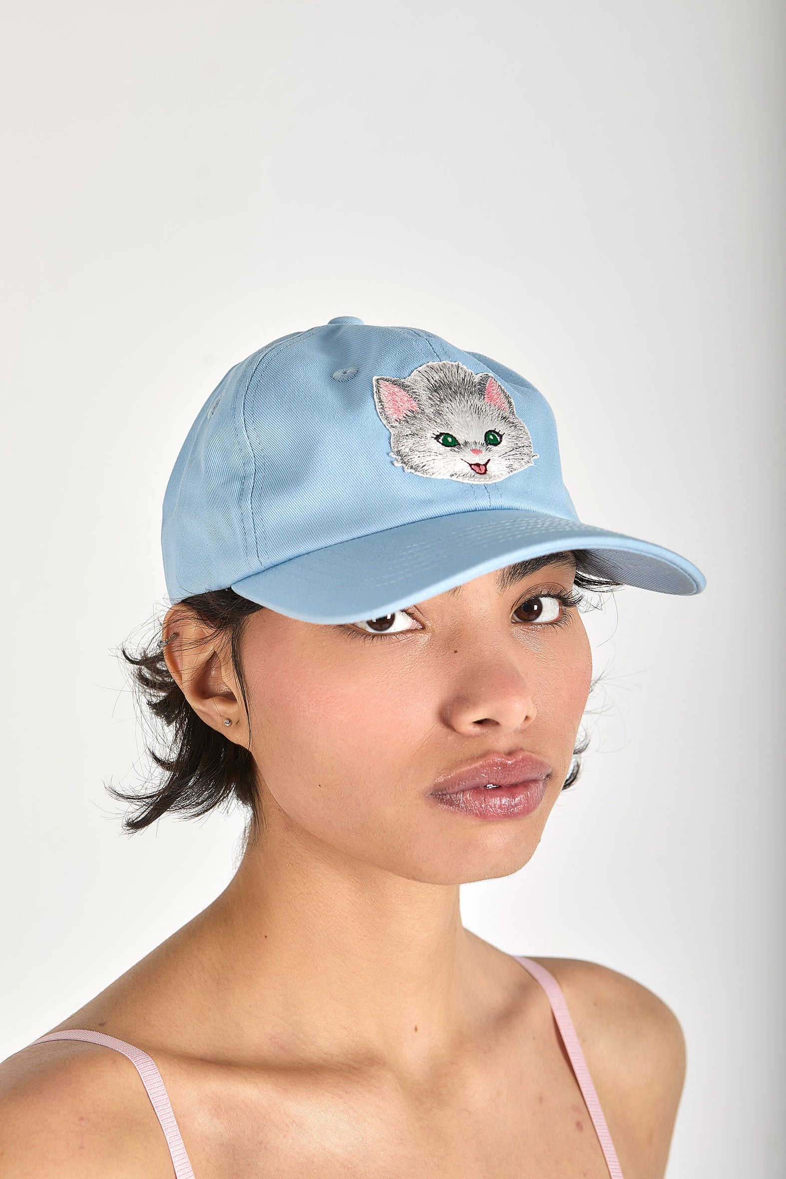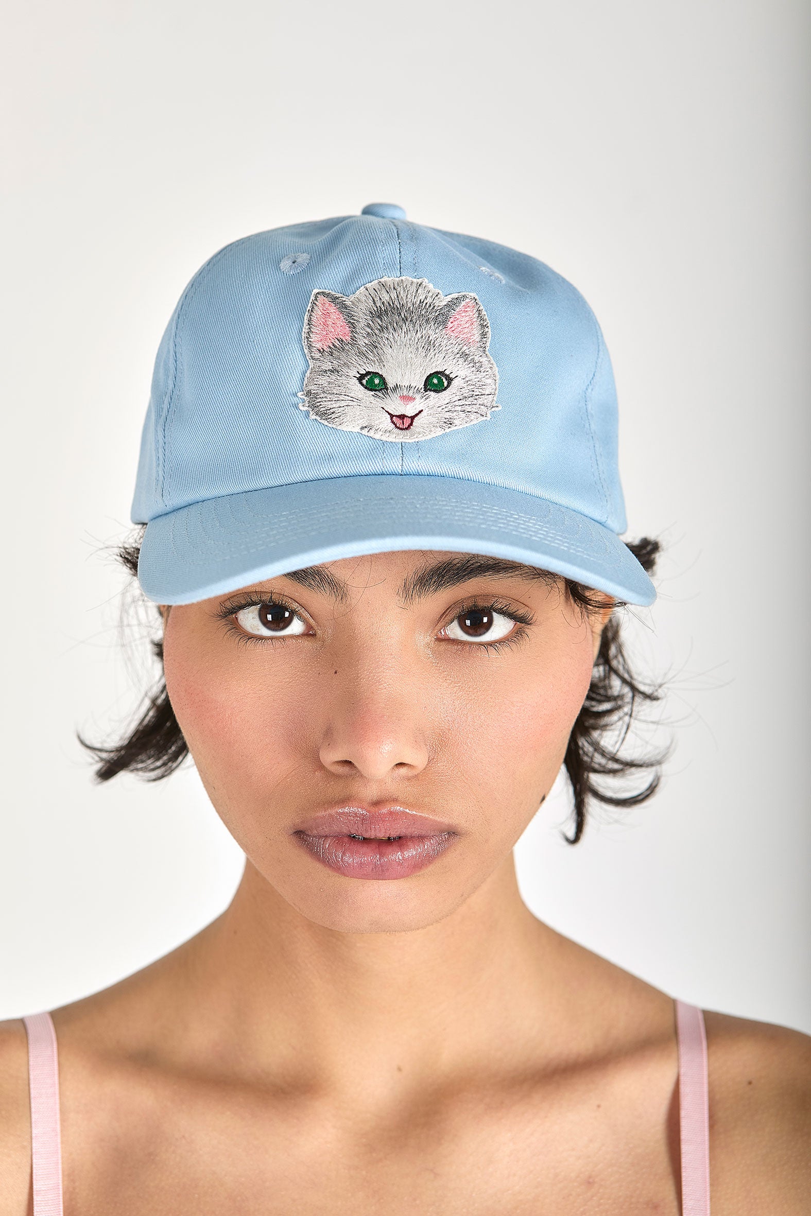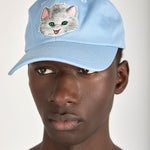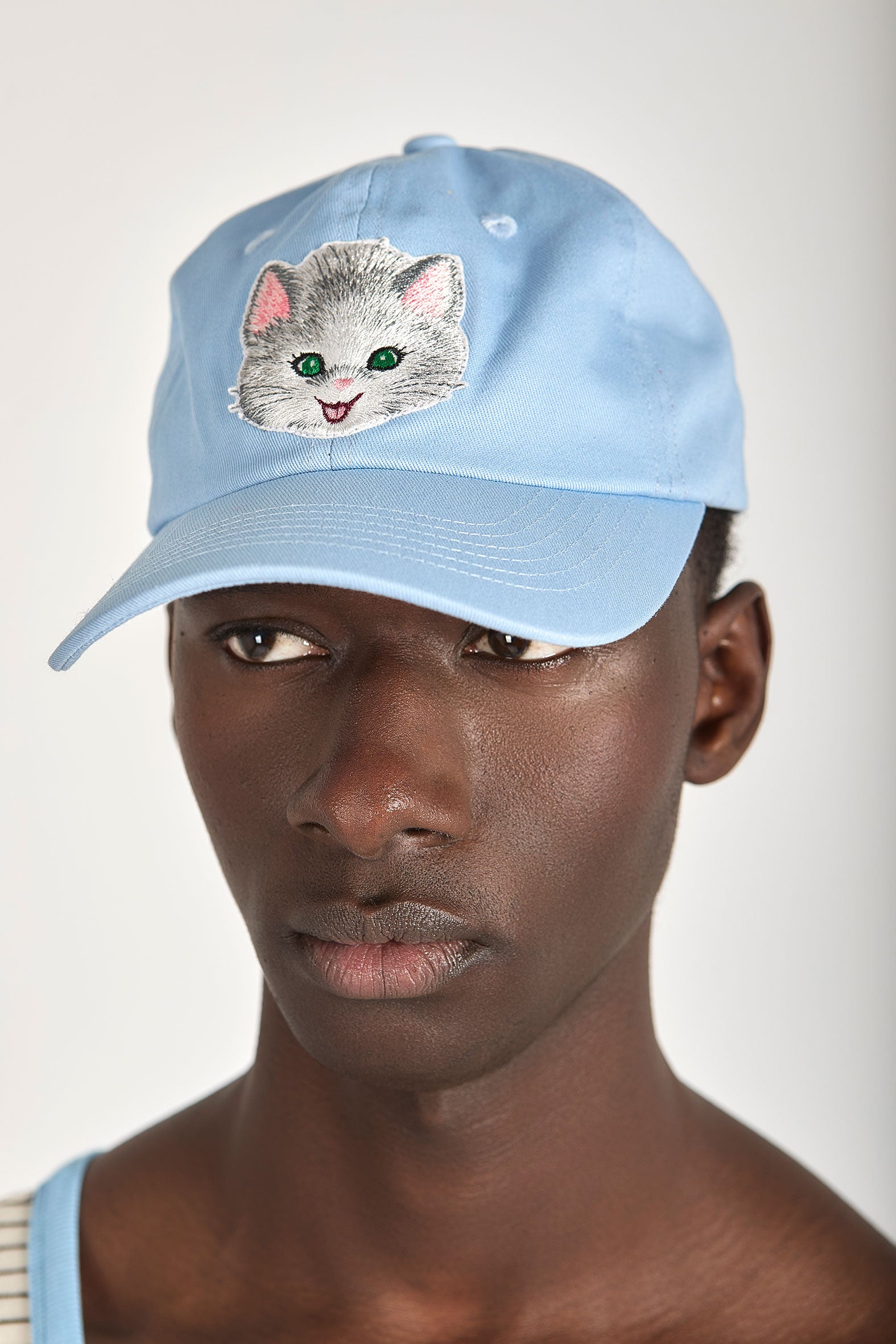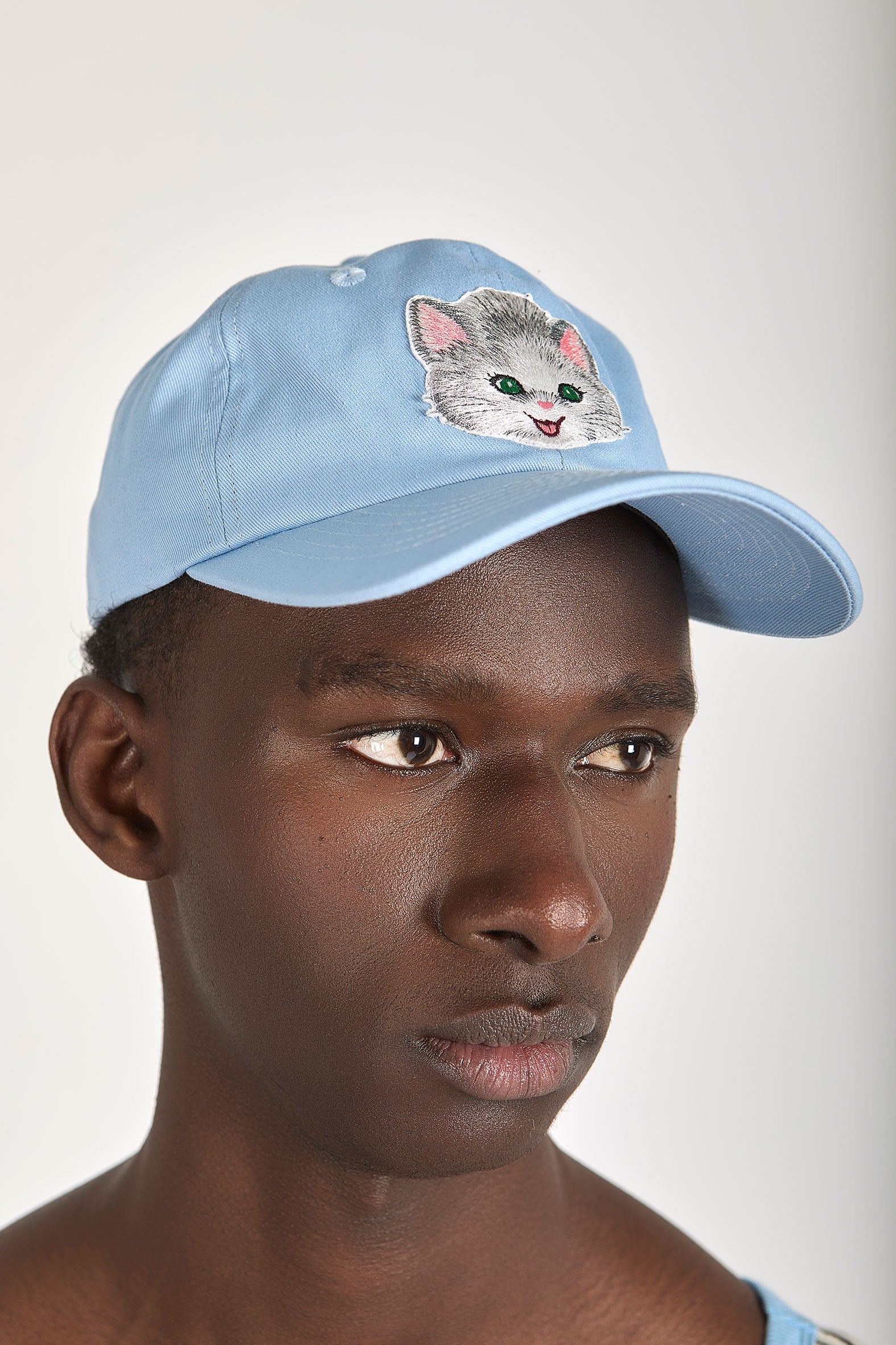 This cap comes with a cat placed exactly at the front, looking straight ahead like it already knows what’s going on.