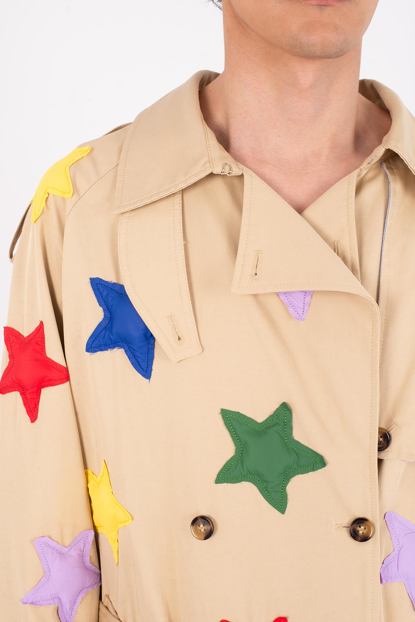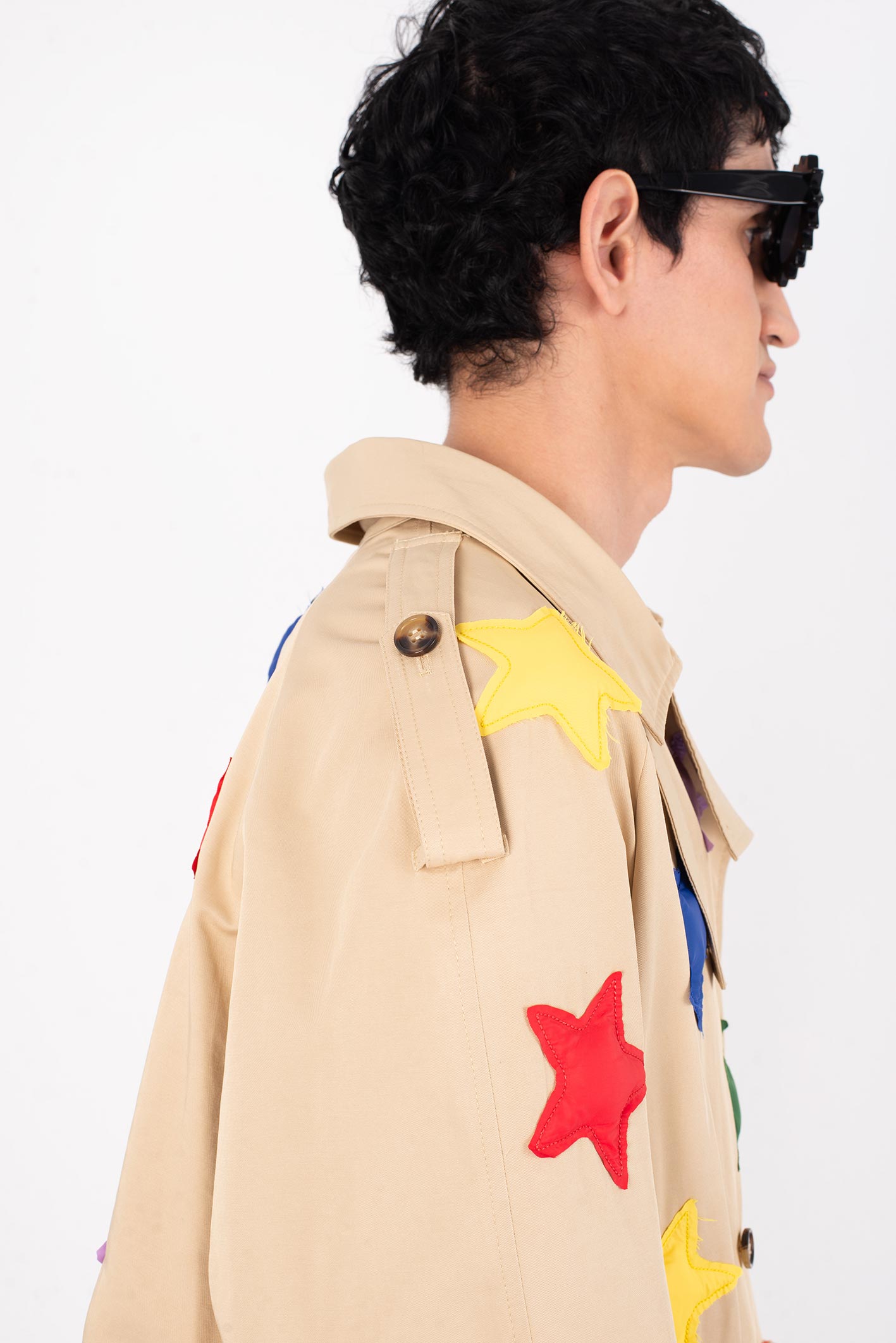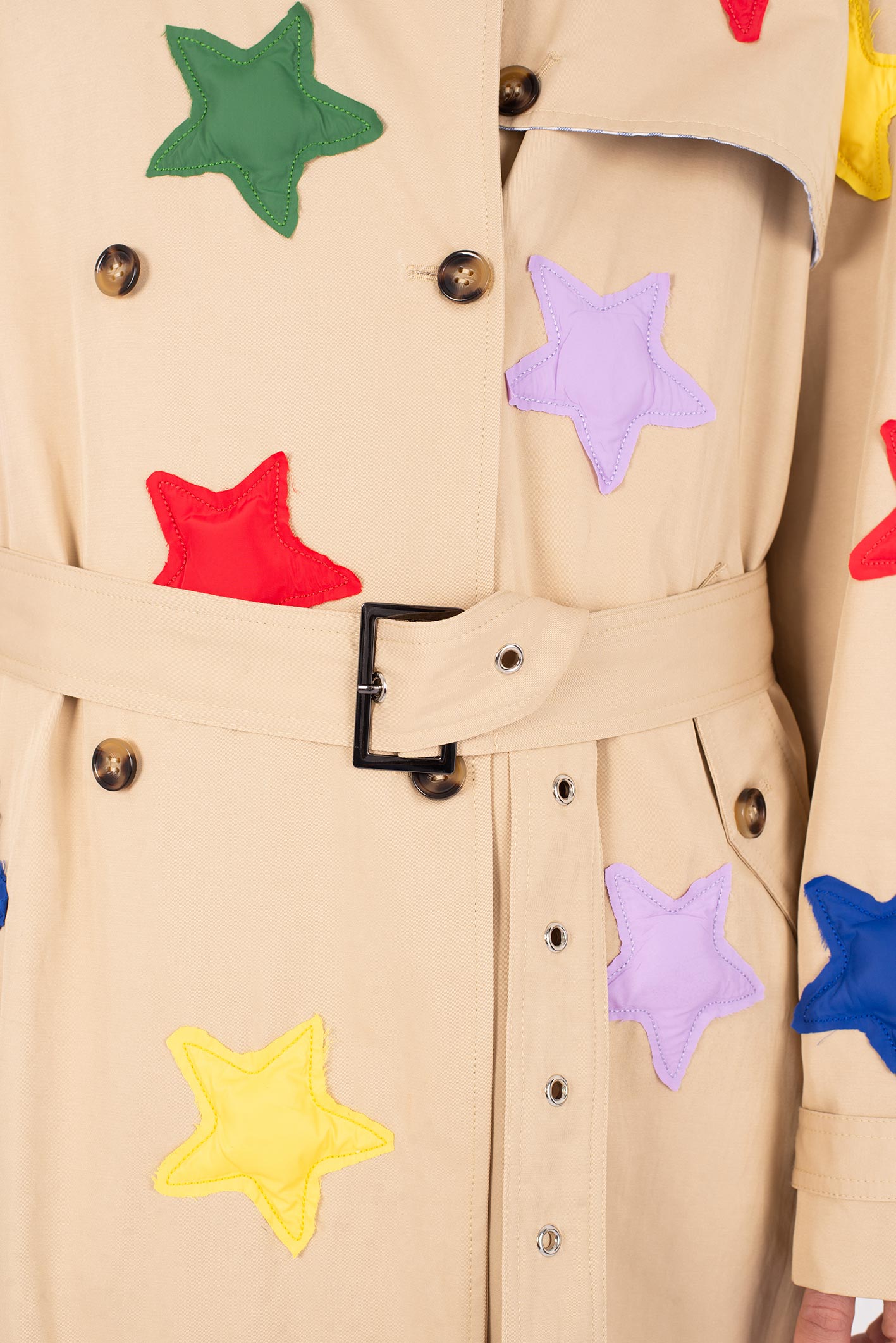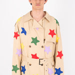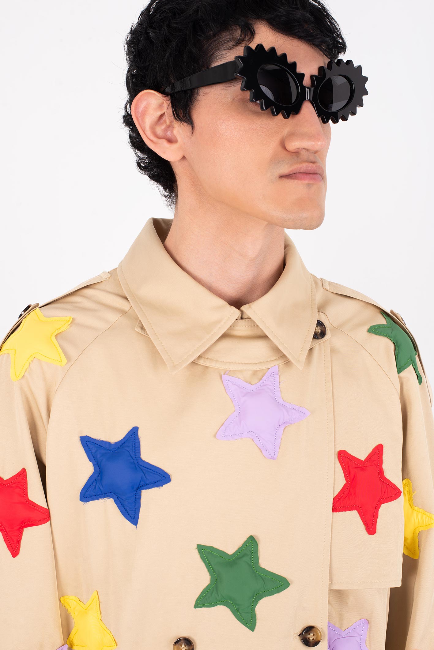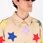 • All-over padded star appliqués stitched onto the fabric