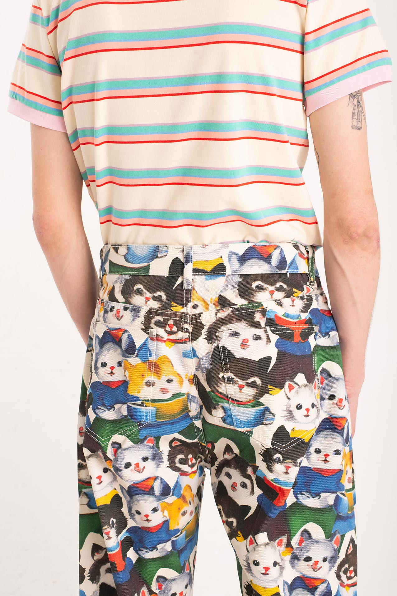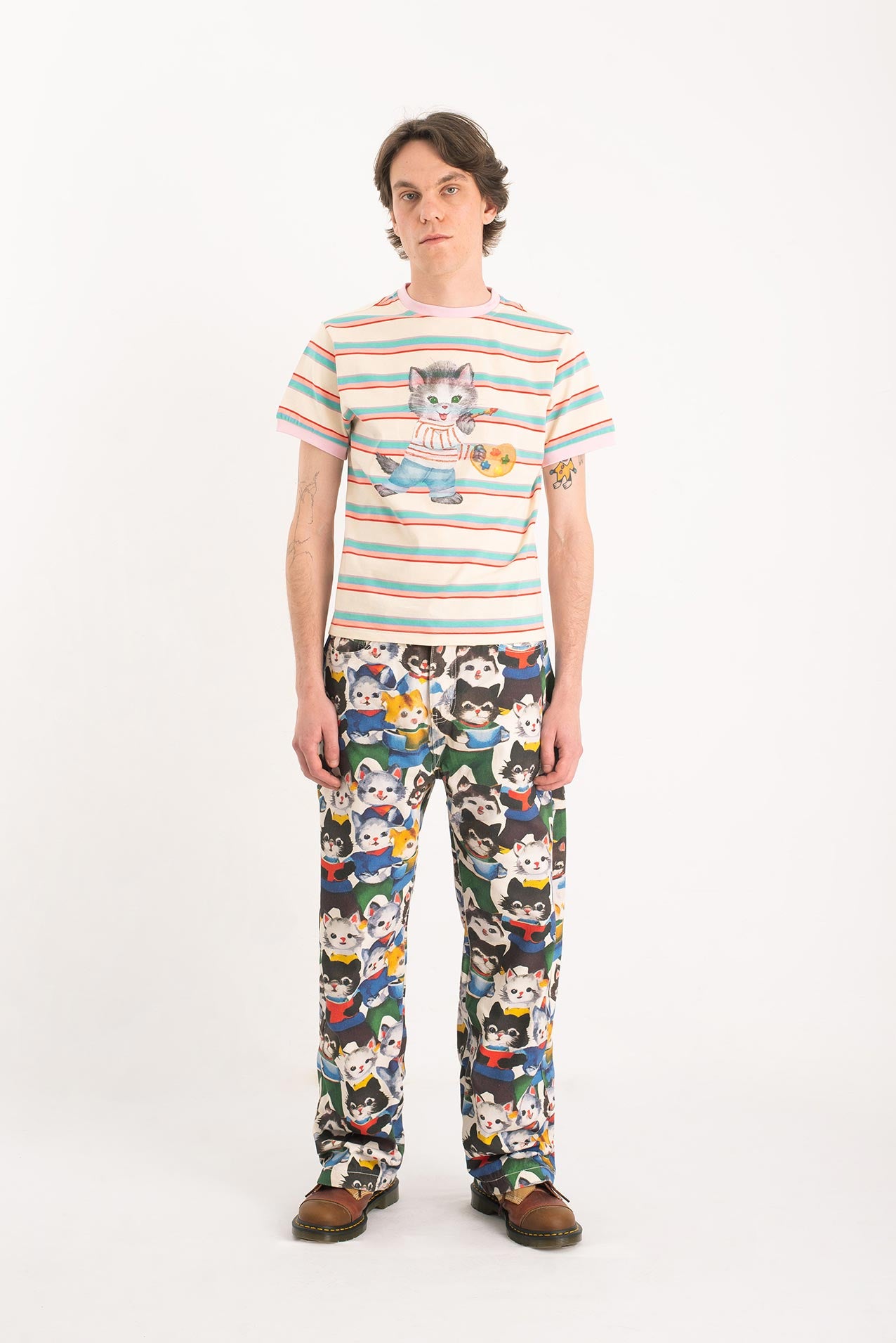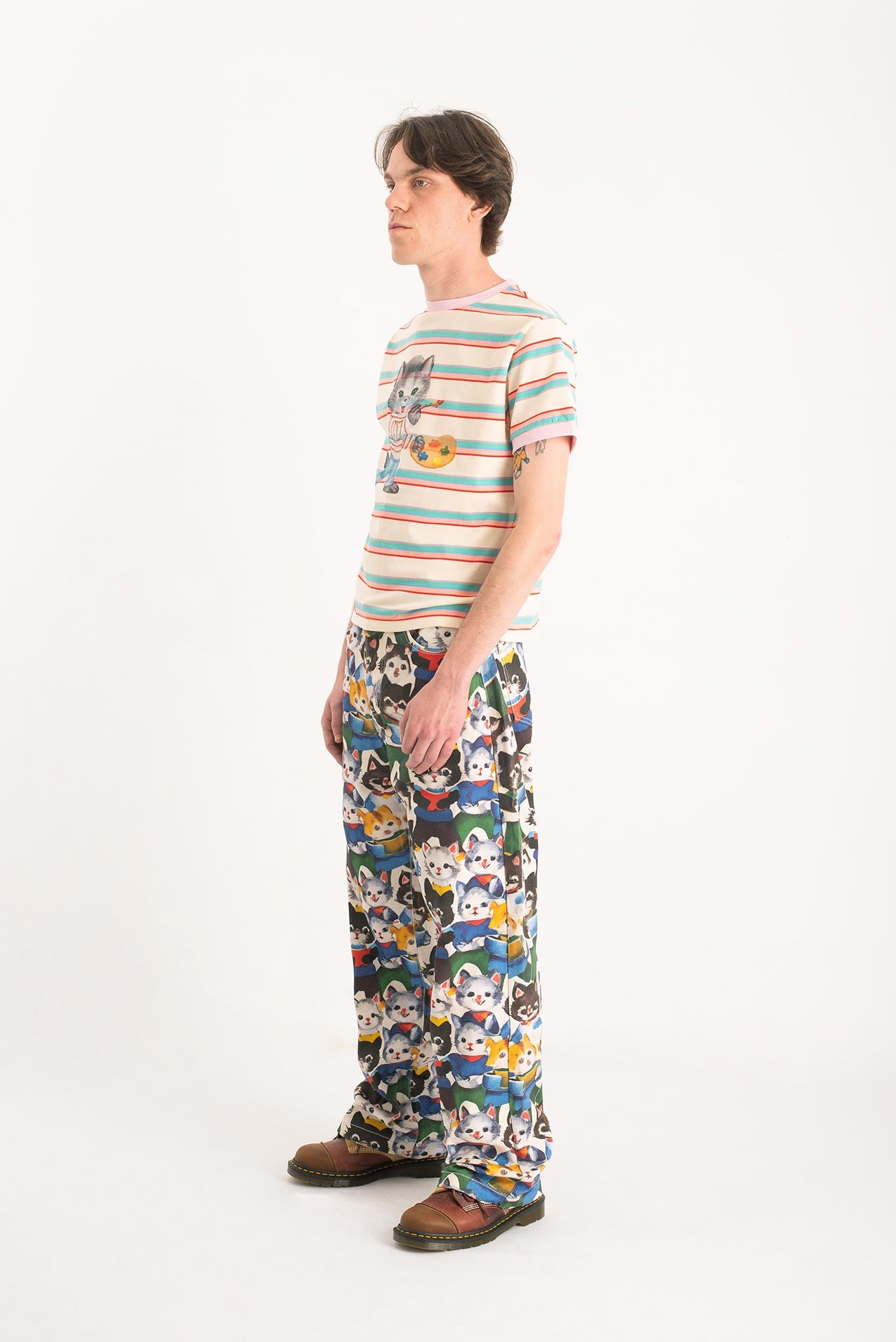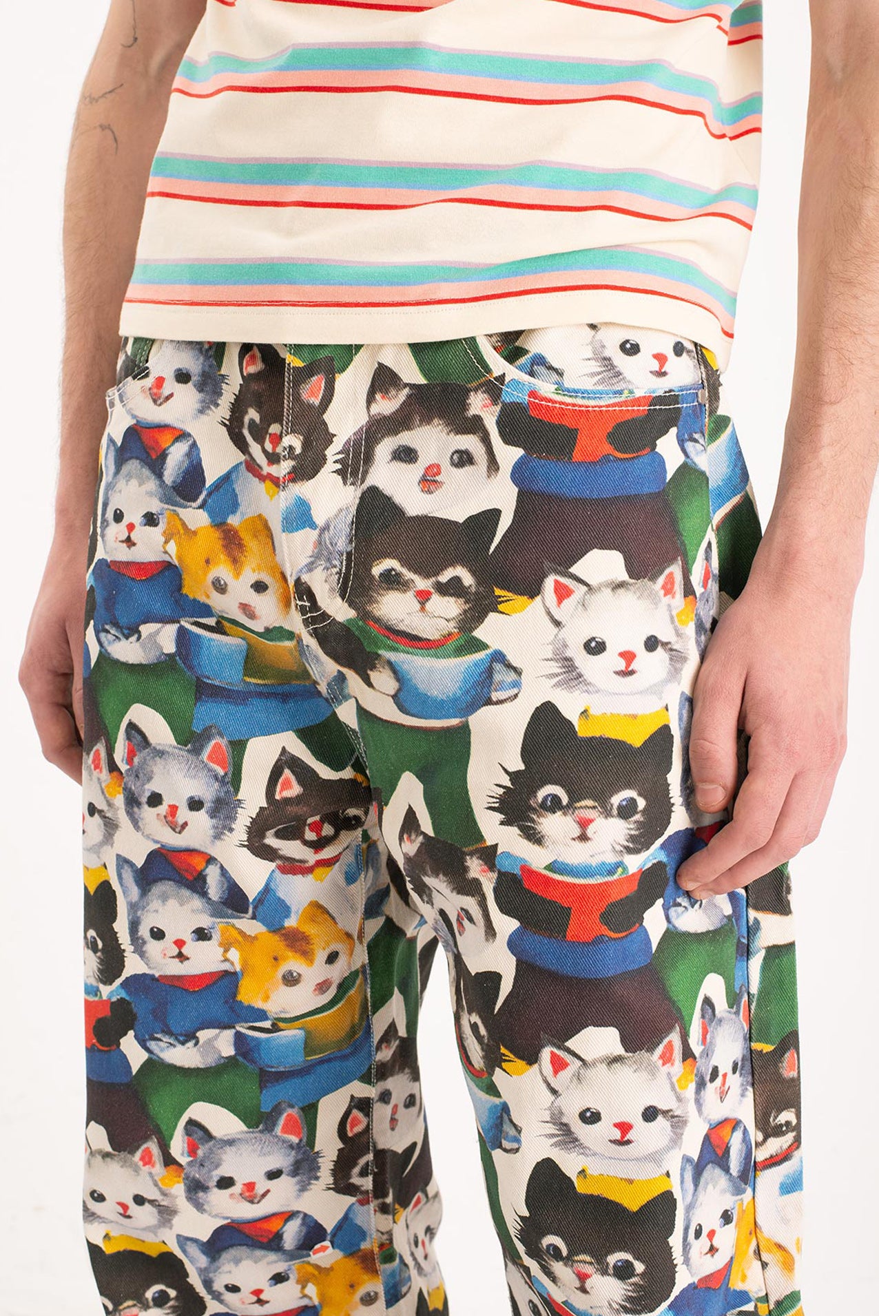 After their art collective fell apart (creative differences, glitter shortage, one dramatic hairball incident), the kittens went solo. One disappeared into the mountains. Another opened a gallery in Ibiza. But one—only one—turned their wildest canvas into pants. These pants. Hand-painted, over-emotional, slightly theatrical. They’re not just wearable art. They’re a dramatic exit from a party that never really ended.