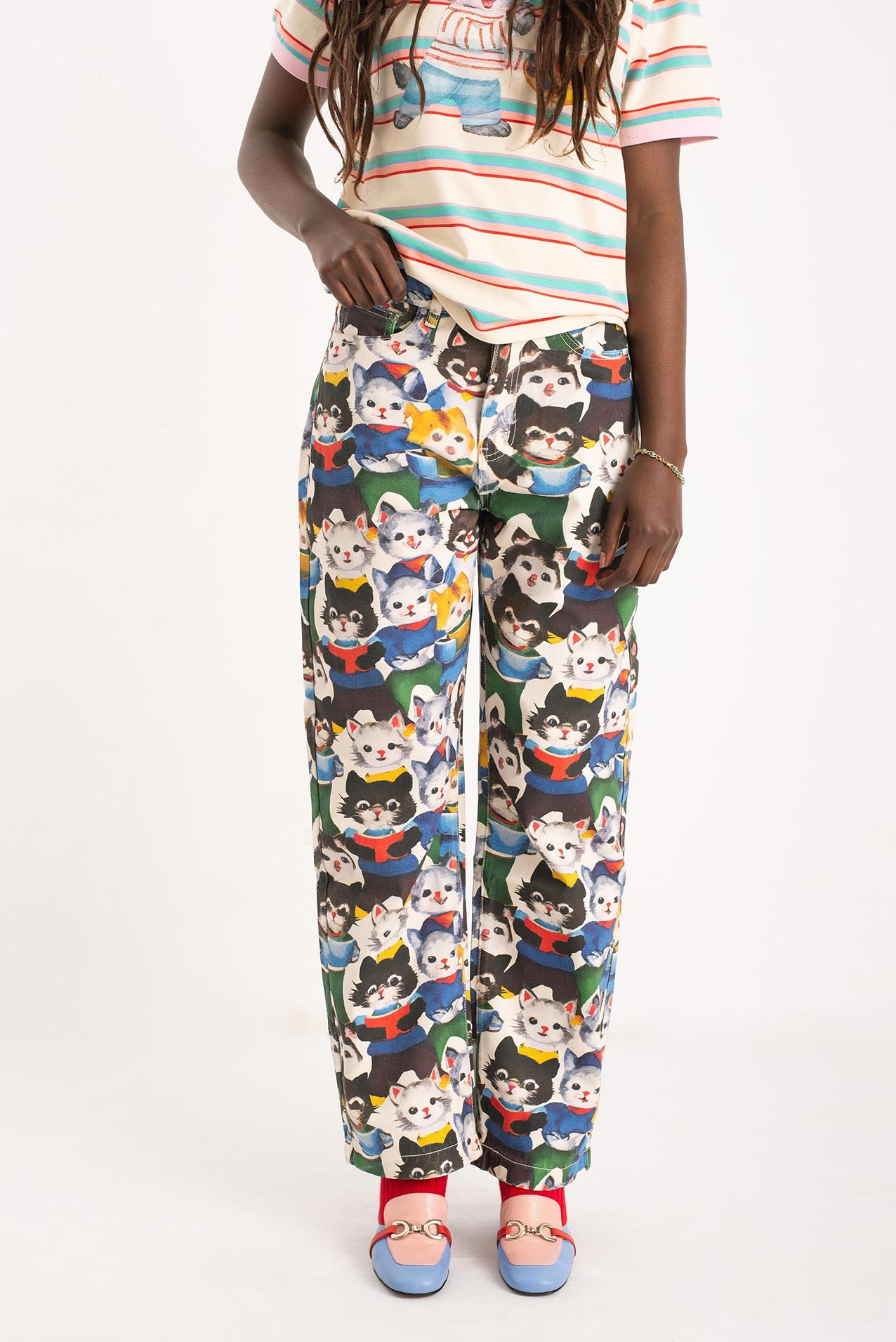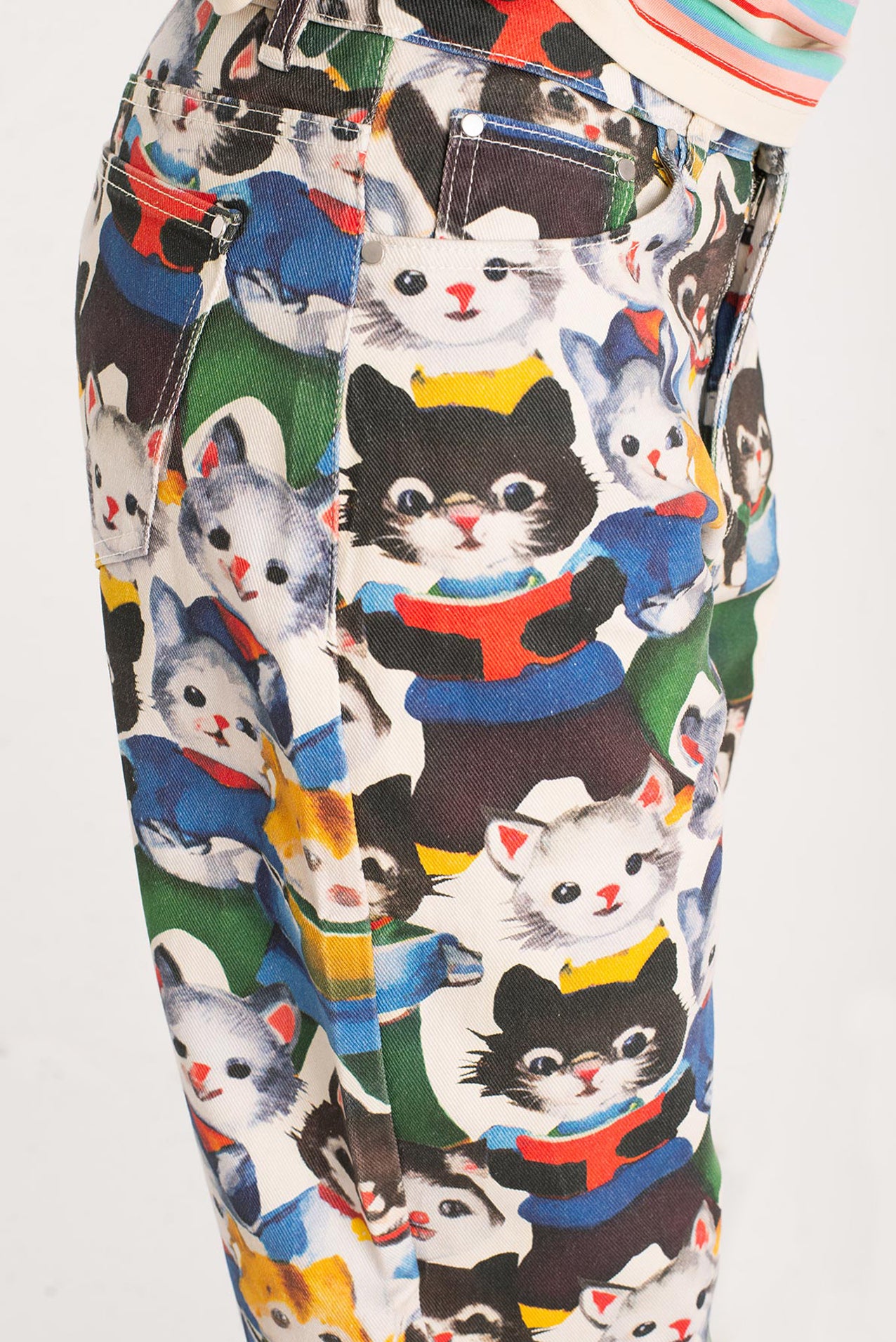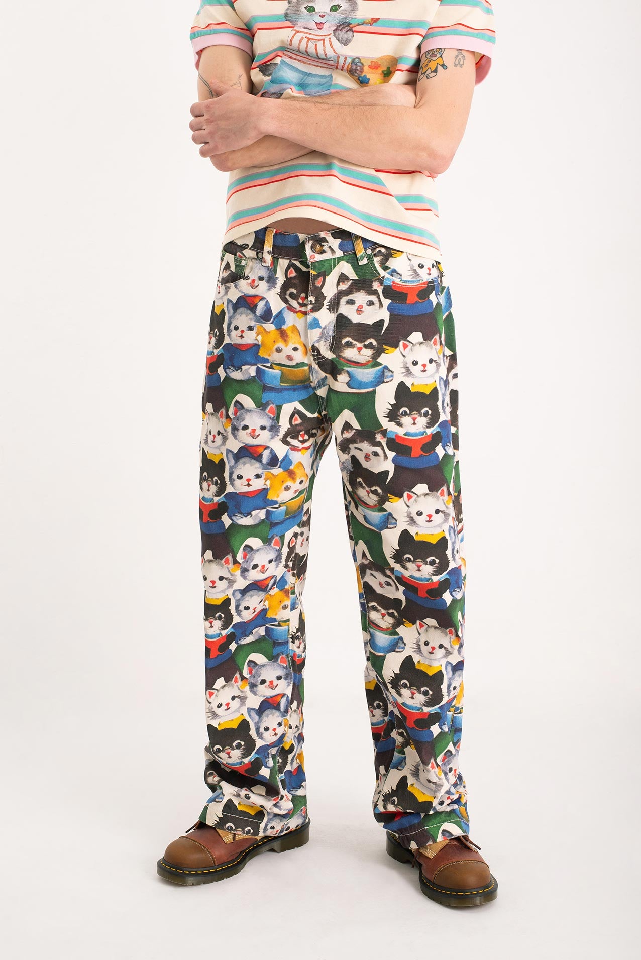 After their art collective fell apart (creative differences, glitter shortage, one dramatic hairball incident), the kittens went solo. One disappeared into the mountains. Another opened a gallery in Ibiza. But one—only one—turned their wildest canvas into pants. These pants. Hand-painted, over-emotional, slightly theatrical. They’re not just wearable art. They’re a dramatic exit from a party that never really ended.