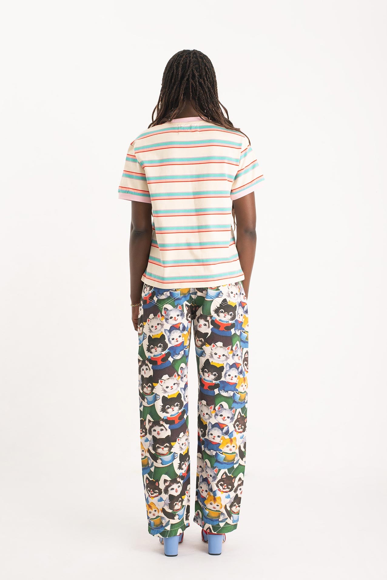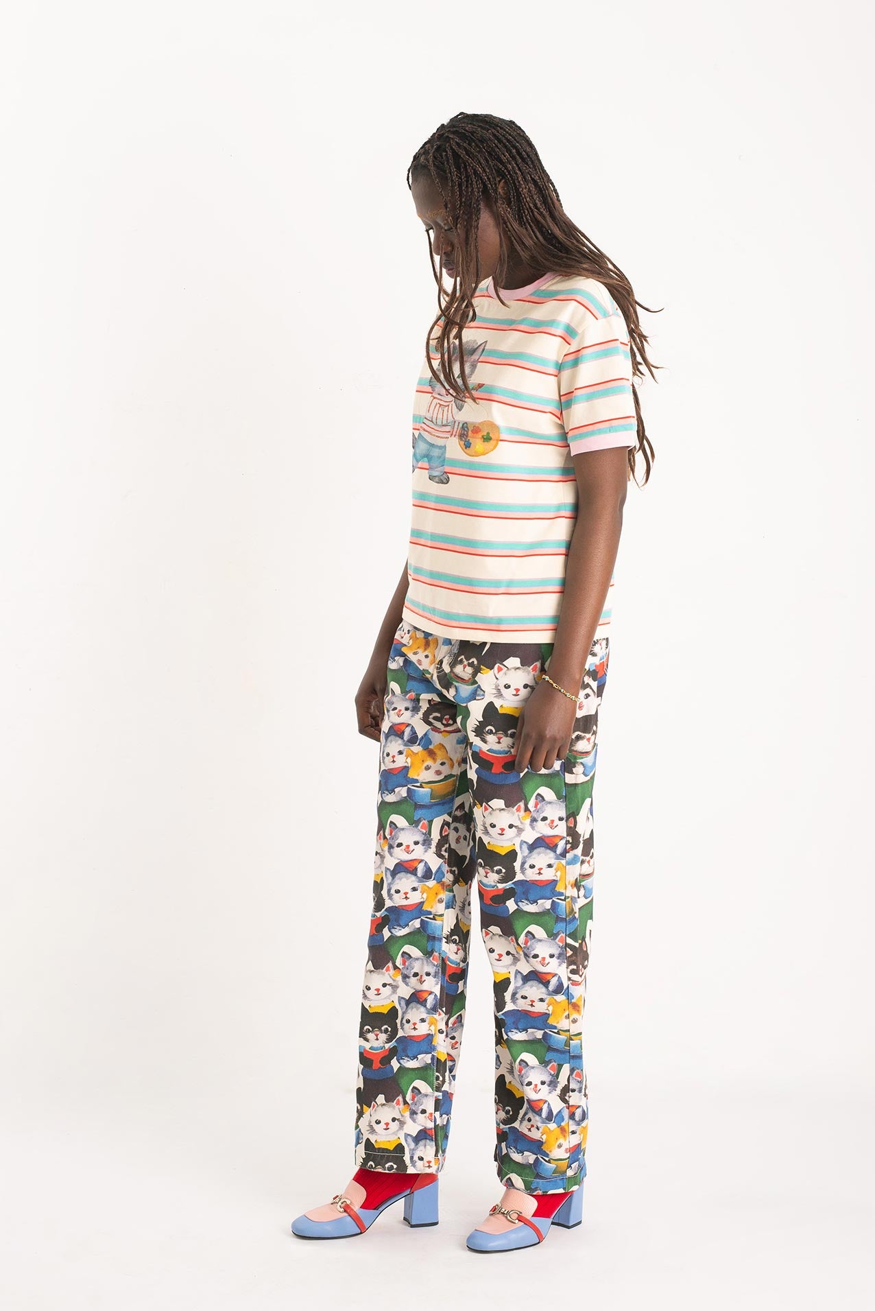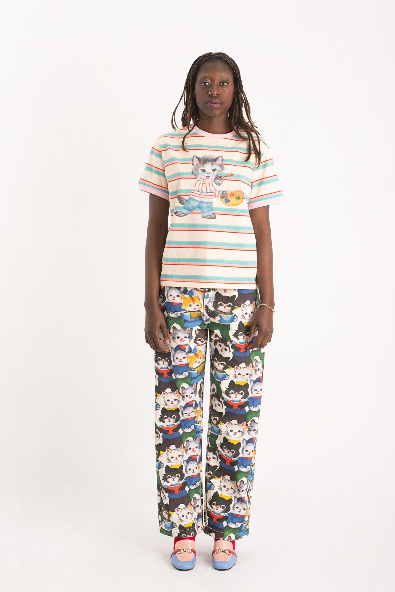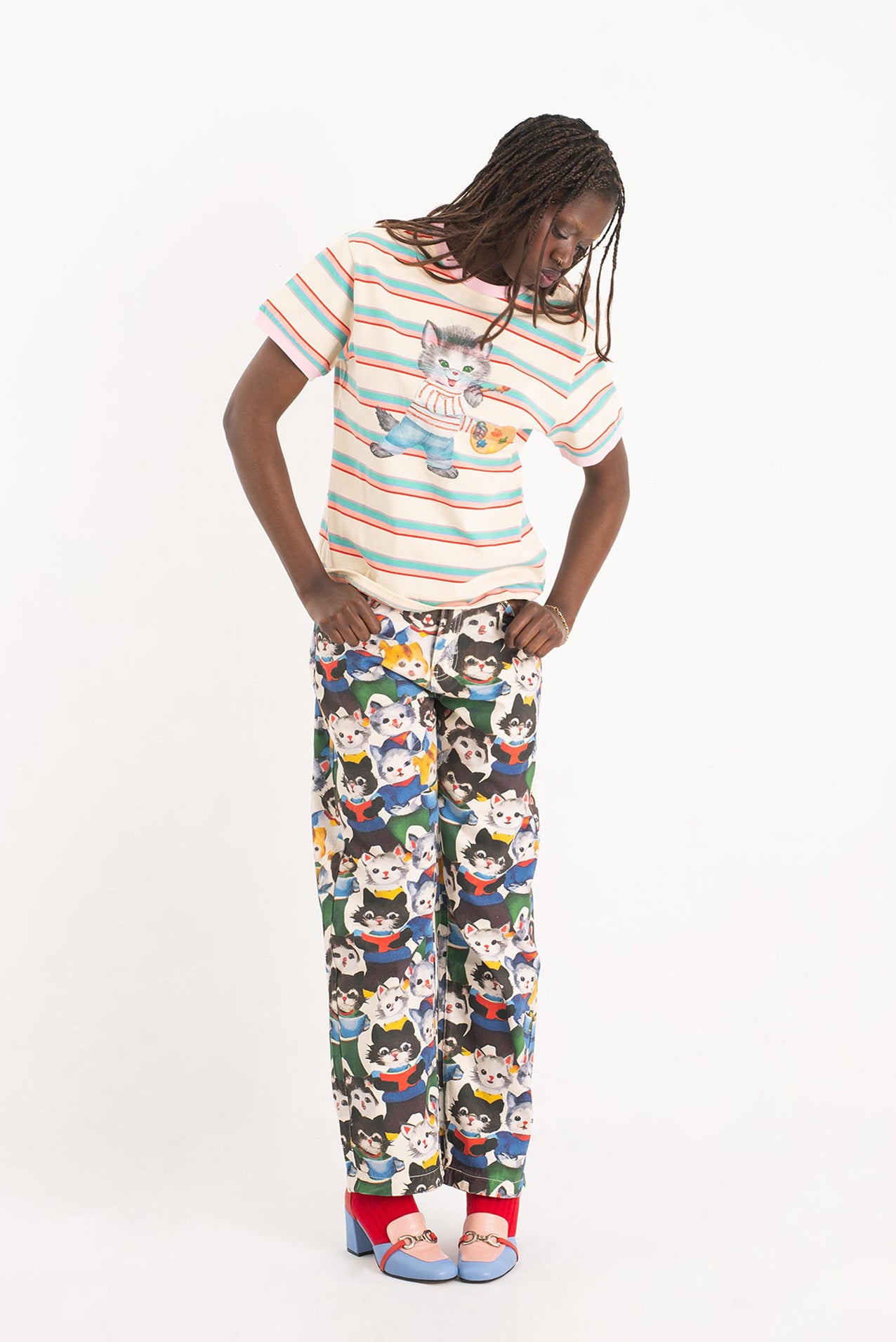 After their art collective fell apart (creative differences, glitter shortage, one dramatic hairball incident), the kittens went solo. One disappeared into the mountains. Another opened a gallery in Ibiza. But one—only one—turned their wildest canvas into pants. These pants. Hand-painted, over-emotional, slightly theatrical. They’re not just wearable art. They’re a dramatic exit from a party that never really ended.